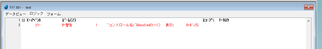 エラー へんすう1→ イベント ズーム の右隣でダブルクリックして、変数2のコントロール名