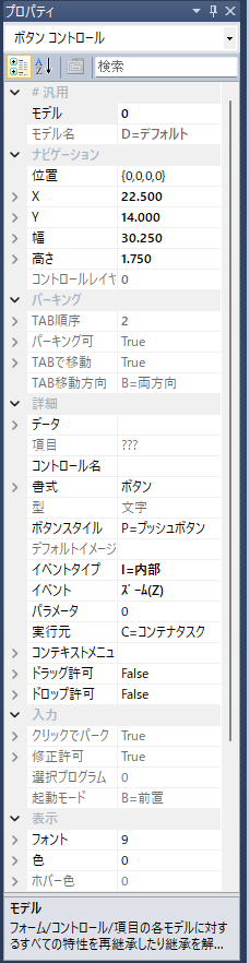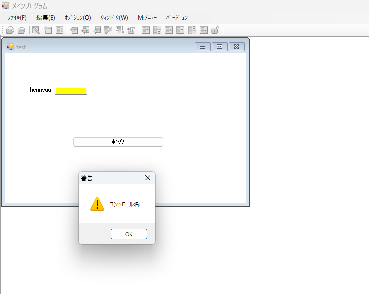 ボタンを押すと、コントロール名が表示されないので、