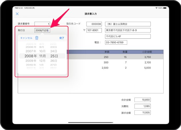 iOS RIAって、プログラムを何も記述していなくても、日付項目をタップするだけで勝手にiOSのカレンダーが開いてくれます。これって、実際に使ってみるとすごく便利ですよ。皆さん、ぜひ使ってみてください。iPhoneでもiPadでもどちらでも使用できます。