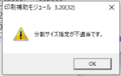 「【印刷補助モジュール 3.20(32)】分割サイズ指定が不適当です。」とエラーが出て印刷できない状況です。