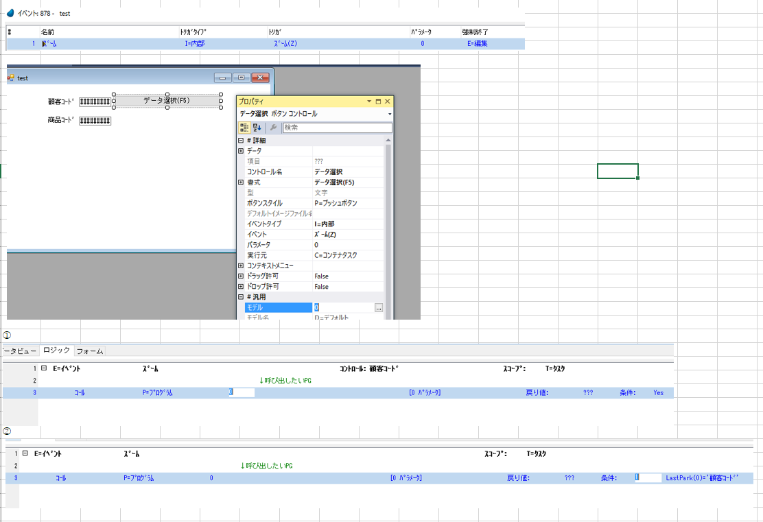 ①イベントロジックの呼び出しの条件そのものに、コントロール名を割り振る場合。