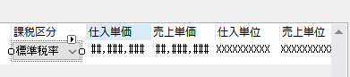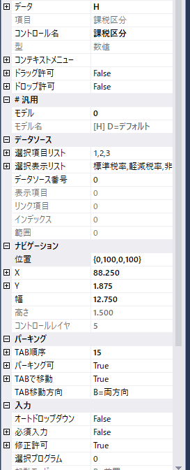 モデル設定をコンボボックス・数値型にしたデータは課税区分のデータがありませんでした。