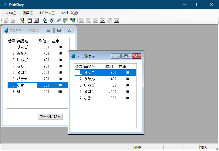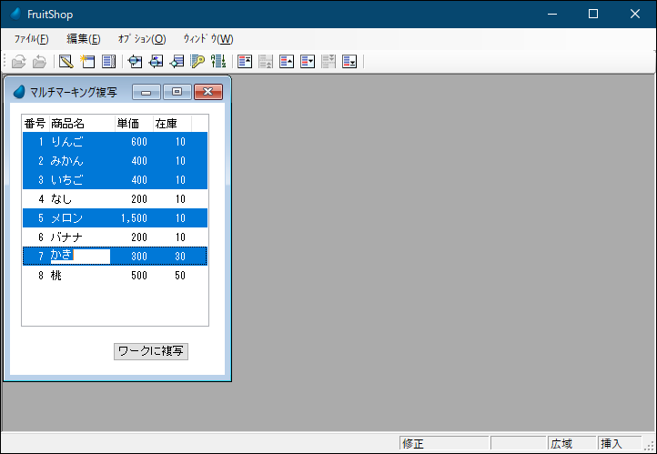 すると、マーキングしたレコードだけがワークファイルにコピーされます。