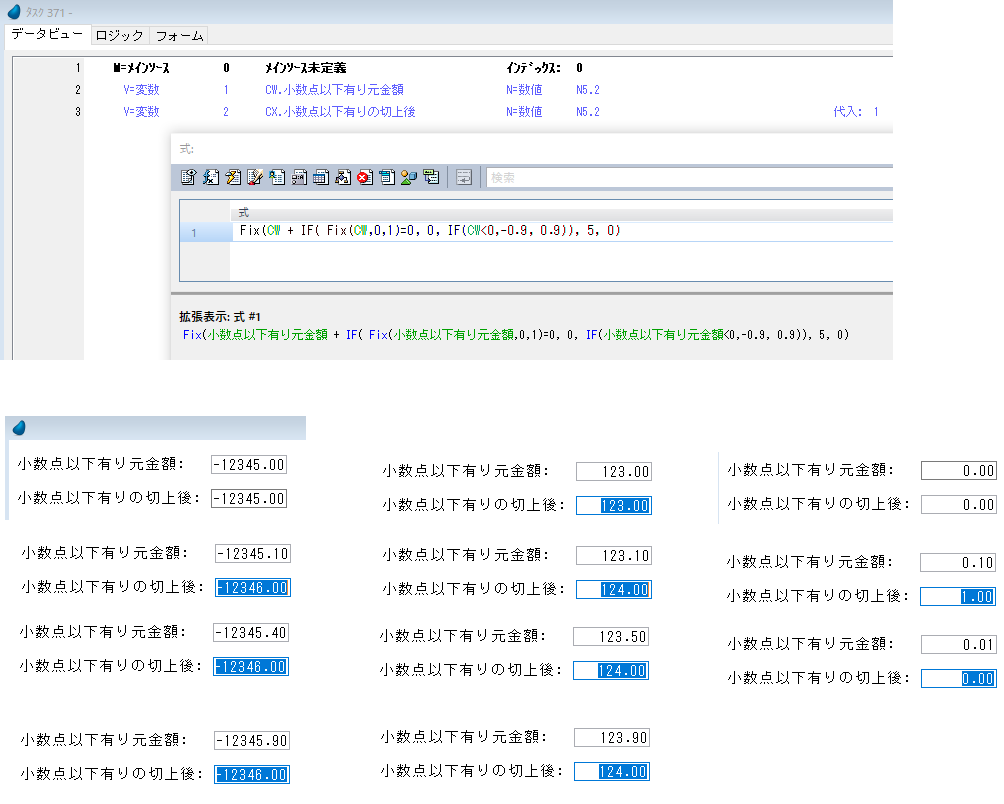 IF(金額端数区分=3,Fix(金額+IF(金額<0,-0.9,0.9),10,2),0)))