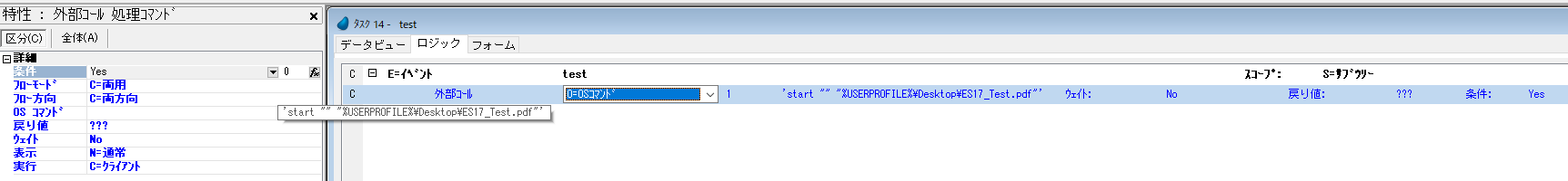 OSコマンドを使用してファイルを開けない