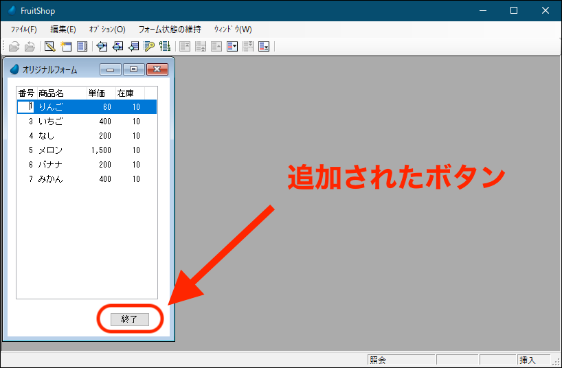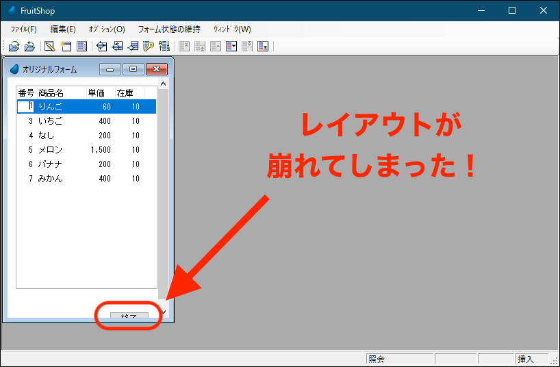 ところがその後、このプログラムのフォームの縦幅を少し広げ、次のように「終了」ボタンを追加したとします(画面3)。
