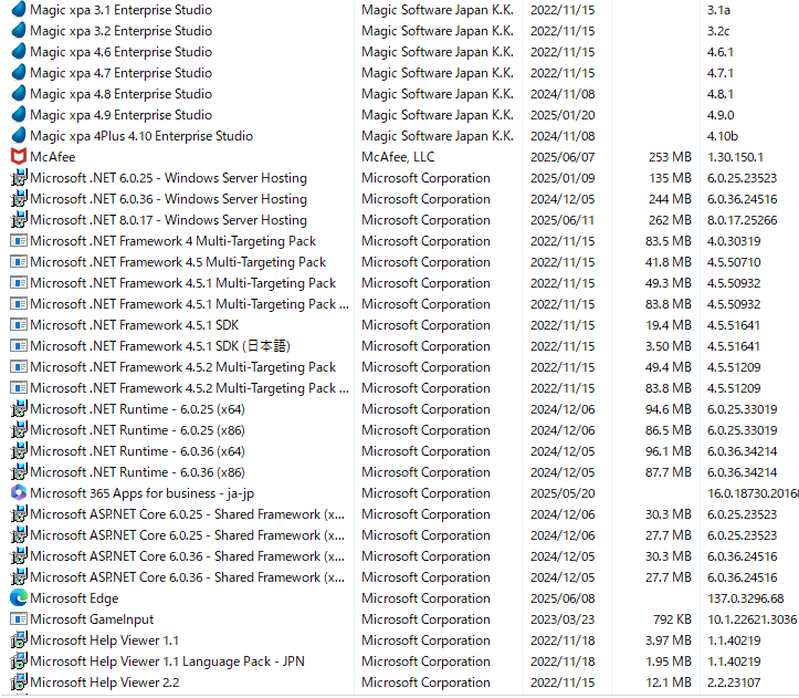 以下のバージョン等関係ありますでしょうか?