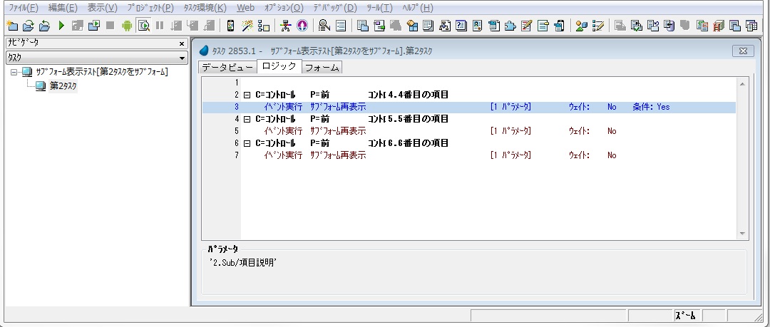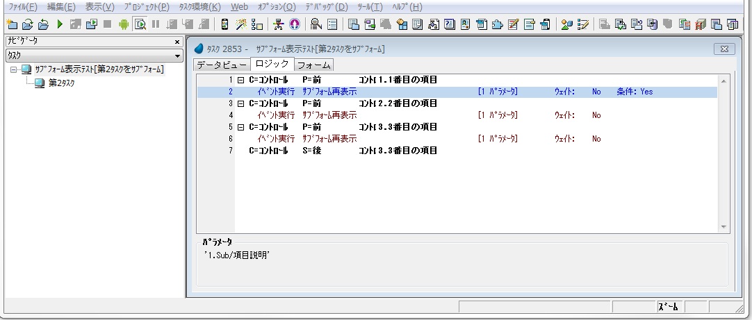 更に2番目タスクにカーソル移動したら2番目タスクの項目説明サブフォームが表示されました。