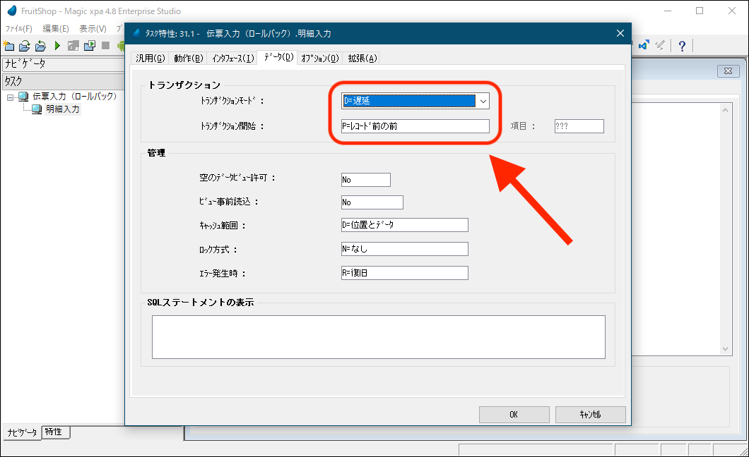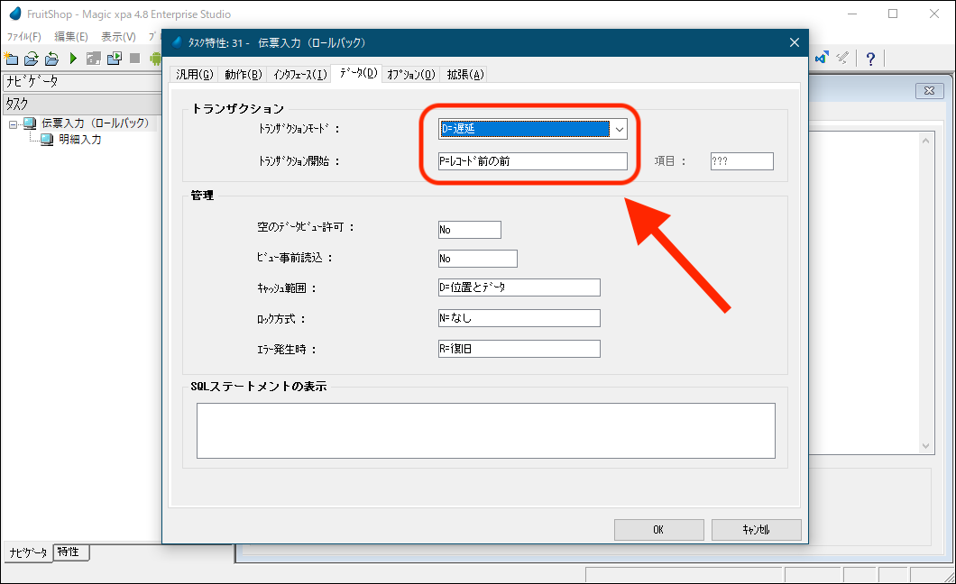 なお、このトランザクションのネストという機能は、遅延トランザクションにおいてのみ可能な機能です。DBが持つ物理トランザクションでは、遅延から物理へのネストはできても、物理同士のネストはできません。Magicオリジナルの遅延トランザクションは、それだけ高度なトランザクションを実装したものであると言えます。