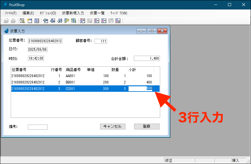 これを実行して、適当なデータを入力したときの画面が、次の画面でした(画面3)。