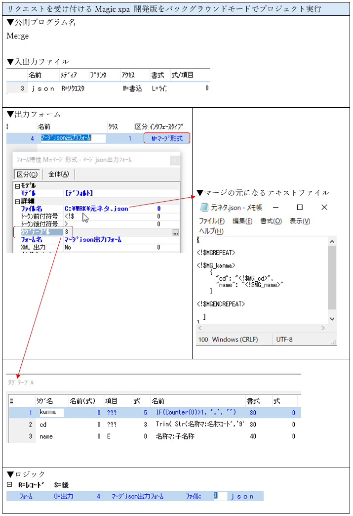 JSONファイルを作るバッチ処理でM=マージ、フォーム出力=ファイル の場合は、File2Req関数を使いますか?