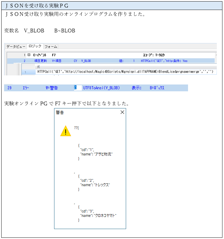 先程の投稿では記述がありませんがDataViewToJSON関数も試してみました。