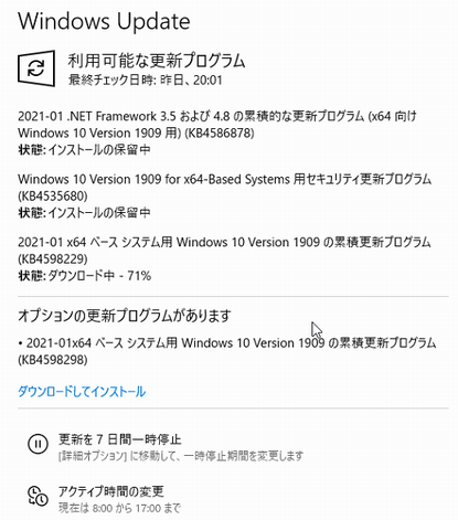 .net framework KB4586878など待ちになっているのをインストーるしてみます。